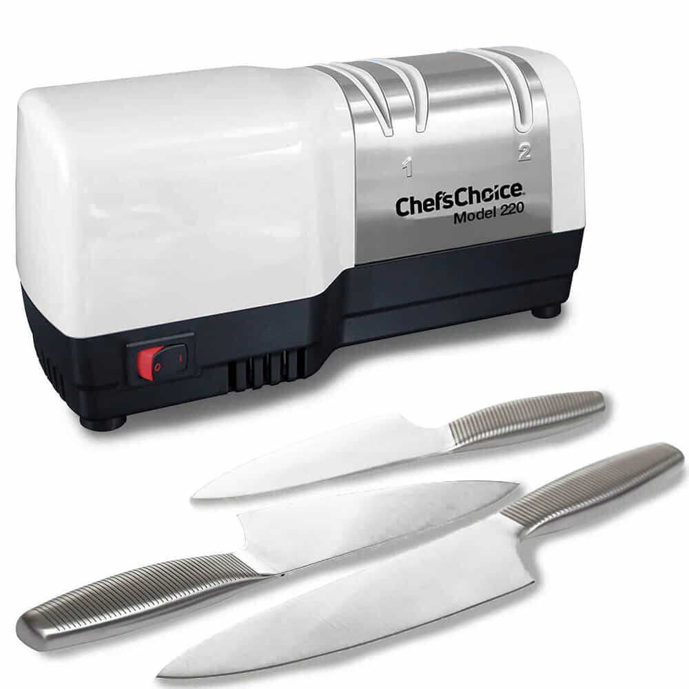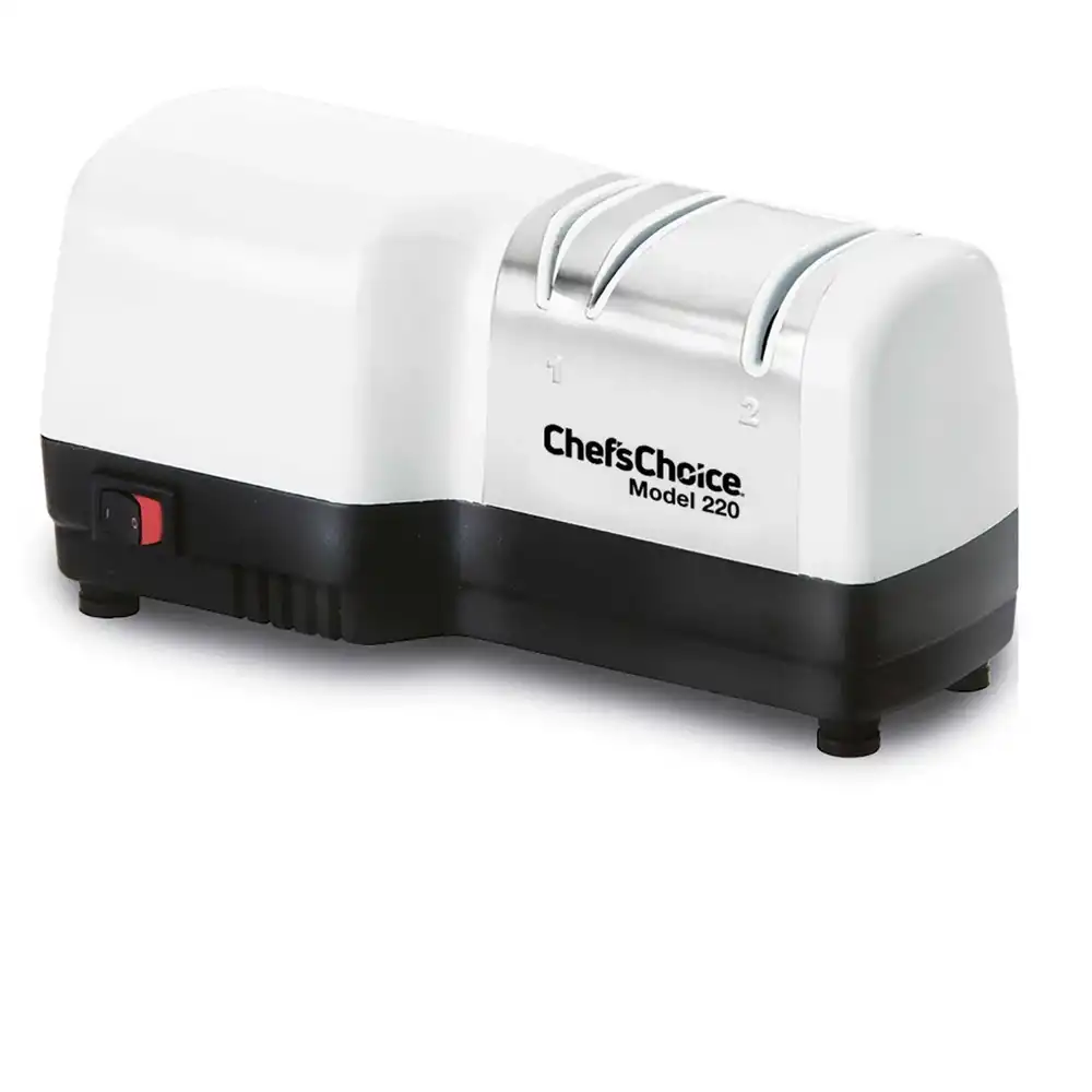 Diamond Hone® Model 220 Bıçak Bileyici, neredeyse her bıçak için olağanüstü verimli bir bıçak oluşturmak üzere gelişmiş elektrikli ve manuel bileme tekniklerini birleştirir. Keskin uçlu, aşırı keskinlik için ince şekillendirilmiştir, ancak tüm yiyecek hazırlama ihtiyaçlarınız ve özellikle lifli malzemeler için çok etkili bir "ısırık" sağlayan güçlü mikroskobik dişlerini korur.