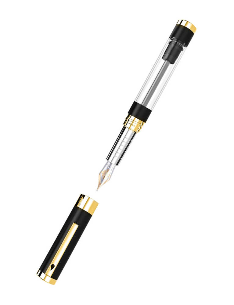 1 adet 14kt altın Fine uçlu dolma kalem, 1 adet siyah mürekkep kabı, 2 adet pipet, hediye kutusu, açıklama ve garanti belgesi