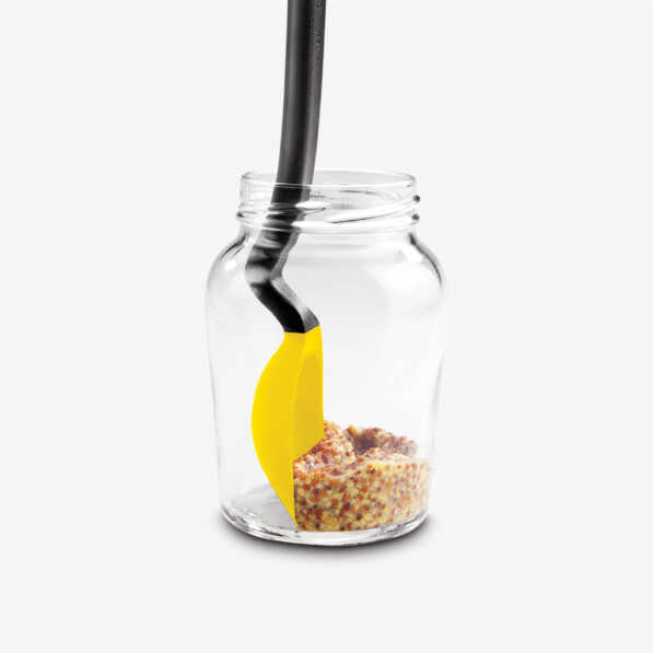 Düz silikon sıyırıcı ucu ve esnek kaşık yan yüzeyleri sayesinde kavanoz veya kâsedeki en son kalıntıya kadar her şeyi kolayca sıyırabilirsiniz.