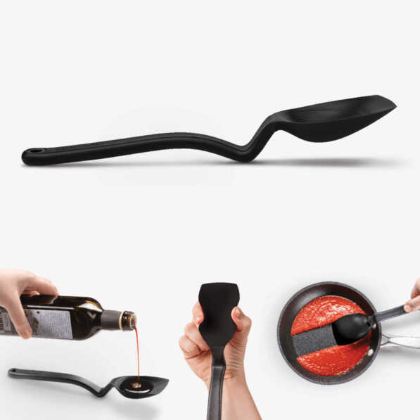 Supoon, dünyanın en iyi pişirme kaşığı olarak tasarlanmıştır. Düz spatula benzeri ucu ve esnek yan yüzeyleri sayesinde tava veya kâseleri tamamen sıyırır; derin kepçe formundaki başlığıyla kolayca toplar ve çay kaşığı ile yemek kaşığı ölçülerini ölçer.