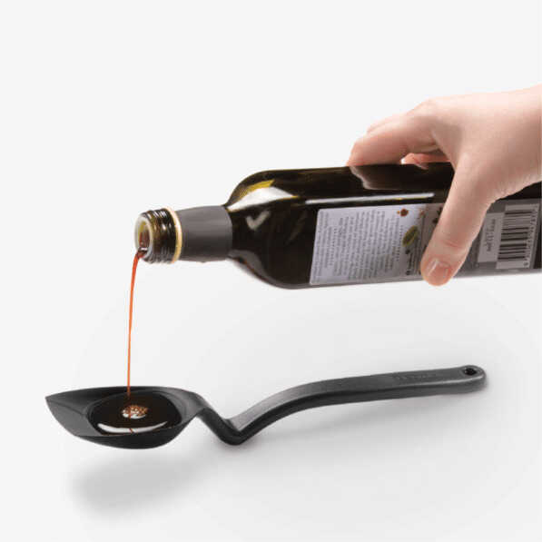 Supoon’un benzersiz sap tasarımı, kaşığın başlığını tezgâha temas etmeden yukarıda tutarak çalışma yüzeylerini temiz ve yiyecekleri hijyenik tutar. Ağırlıklı sapı sayesinde soslara daldırıldığında bile devrilmeden dengede kalır.