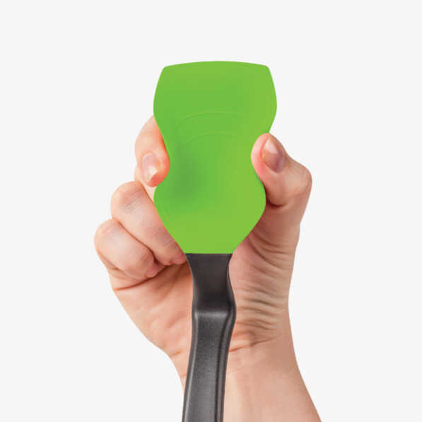 Akıllı sap tasarımı, entegre kaşık altlığı gibi çalışarak Supoon’un başlığını tezgâha temas etmeden yukarıda tutar.