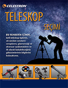 TELESKOP SEÇİMİ İlk teleskobun seçimi her zaman büyük bir adım olmuştur. Özellikle de ilgili terimlerin ne anlama geldiğinden emin değilseniz.. Bu yüzden biz de kaliteli bir teleskopta dikkat edilmesi gereken özelliklerin anlaşılabilmesi için, en çok sorulan 11 sorunun cevabını vermeye çalıştık. Bu rehberin içinde, belli teleskop tiplerini,sık sorulan soruların cevaplarını, gözmerceği ve aksesuar açıklamalarını ve ilk olarak bakabileceğiniz gökcisimlerinin bilgilerini bulacaksınız. Rehberi görüntülemek için tıklayınız. |