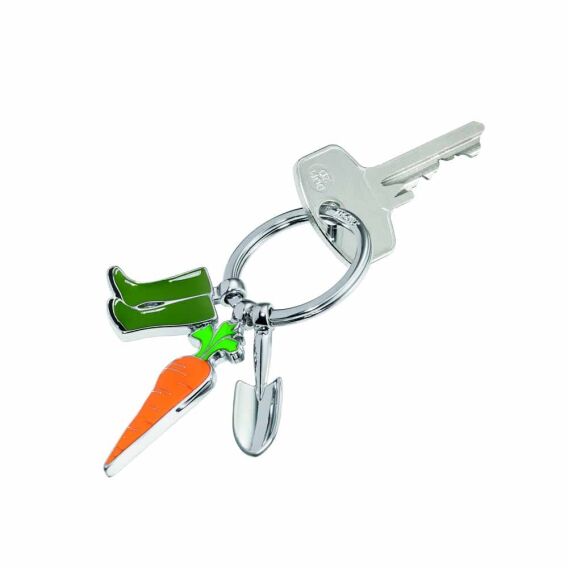 Troika, bahçecilik tutkunları için mükemmel bir çekicilik anahtarlığı yarattı. Troika charm anahtarlıkları, ağır krom bölünmüş halkalara ve ince işlenmiş emaye charmlara sahiptir. Bu Troika anahtarlığında üç bahçe malzemesi, Wellington Botları, Mala ve Turuncu Havuç şeklinde takılar bulunur. Mükemmel bir şekilde organize edilmiş bir anahtarlık için en önemli anahtarlarınızı ayırmak üzere takıları kullanın.