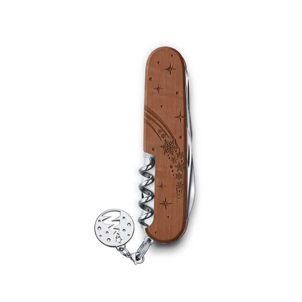 Kış mevsiminin büyüsünden ilham alan bu özel tasarımda, karla kaplı Alplerin ağaç siluetleri armut ağacı kabzalar üzerine lazerle işlenmiştir.