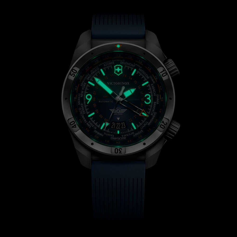 Air Pro Automatic, hassasiyet ve dayanıklılık için tasarlanmış, uçuşa hazır bir saat modelidir. Üç boyutlu kadranı sayesinde üç farklı saat dilimini takip edebilir; ikinci saat dilimi özel GMT ibresiyle gösterilir. İsviçre yapımı Sellita SW330-2 otomatik mekanizma ile çalışan model, 56 saatlik güç rezervine sahiptir. Saat 4 yönünde zaman ayarı için vidalı kurma kolu, saat 2 yönünde ise GMT fonksiyonları için ikinci kurma kolu bulunur. 200 metreye kadar ISO sertifikalı darbe ve su dayanıklılığı sunan saat, ayrıca Swiss Super-LumiNova® dolgulu büyük ibreler ve göstergelerle üstün okunabilirlik sağlar.