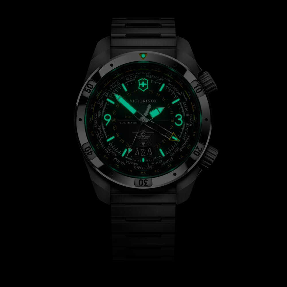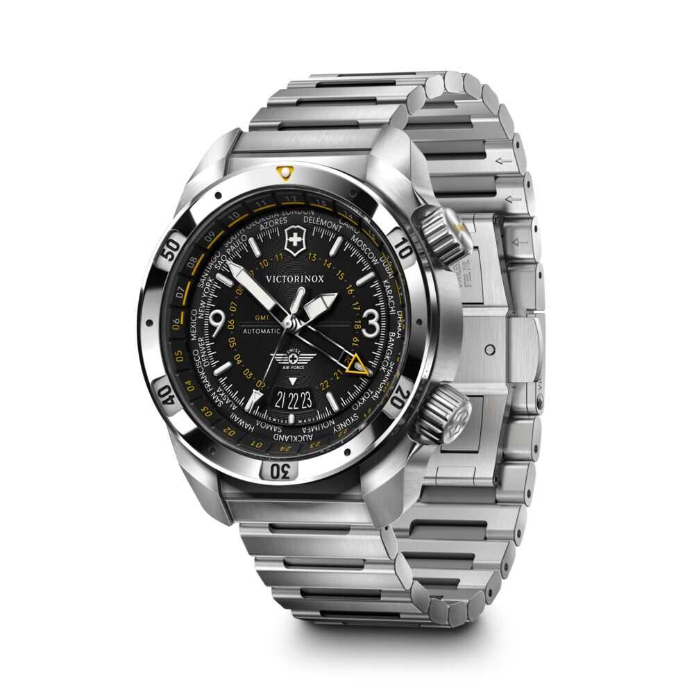 Air Pro Automatic, hassasiyet ve dayanıklılık için tasarlanmış, uçuşa hazır bir saat modelidir. Üç boyutlu kadranı sayesinde üç farklı saat dilimini takip edebilir; ikinci saat dilimi özel GMT ibresiyle gösterilir. İsviçre yapımı Sellita SW330-2 otomatik mekanizma ile çalışan model, 56 saatlik güç rezervine sahiptir. Saat 4 yönünde zaman ayarı için vidalı kurma kolu, saat 2 yönünde ise GMT fonksiyonları için ikinci kurma kolu bulunur. 200 metreye kadar ISO sertifikalı darbe ve su dayanıklılığı sunan saat, ayrıca Swiss Super-LumiNova® dolgulu büyük ibreler ve göstergelerle üstün okunabilirlik sağlar.