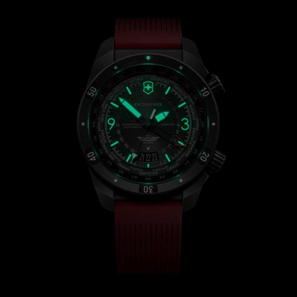 Air Pro Automatic, hassasiyet ve dayanıklılık için tasarlanmış, uçuşa hazır bir saat modelidir. Üç boyutlu kadranı sayesinde üç farklı saat dilimini takip edebilir; ikinci saat dilimi özel GMT ibresiyle gösterilir. İsviçre yapımı Sellita SW330-2 otomatik mekanizma ile çalışan model, 56 saatlik güç rezervine sahiptir. Saat 4 yönünde zaman ayarı için vidalı kurma kolu, saat 2 yönünde ise GMT fonksiyonları için ikinci kurma kolu bulunur. 200 metreye kadar ISO sertifikalı darbe ve su dayanıklılığı sunan saat, ayrıca Swiss Super-LumiNova® dolgulu büyük ibreler ve göstergelerle üstün okunabilirlik sağlar.