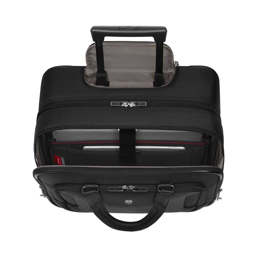 Üst taşıma sapı, tekerlekleri ve VST Victorinox Stabilizing Technology’ye sahip profilli kenar teleskopik çekme sistemi sayesinde çanta kolayca taşınır ve hareket hâlindeyken üstün denge ve kontrol sunar.