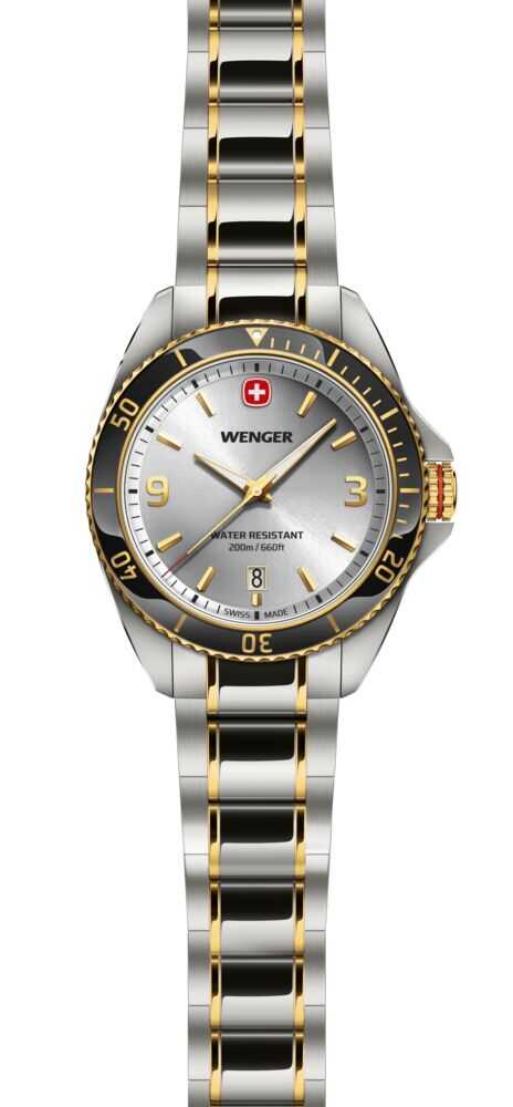 Executive saat ile zamansız zarafeti benimseyin. İster günlük kullanım ister özel davetler için olsun, bu saat yaşam tarzınızın gerekliliklerini karşılarken her kombini bir üst seviyeye taşımak üzere tasarlanmıştır. Bu İsviçre yapımı kuvars saat, kasayı, bezelde yer alan metalize mineral inserti ve kadranı uyum içinde bir araya getiren özenle düzenlenmiş renk paletiyle Wenger’in zengin mirasına saygı duruşunda bulunur. Zarif kadran, sofistike aplik indeksler ve ışık yayan alanlarla süslenmiş olup, düşük ışık koşullarında ve gece kullanımında optimum okunabilirlik sağlar. Saat kasasında kullanılan metalik yüzeyler ve parlatılmış pahlar sayesinde Executive, işlevsellik ve stilin kusursuz bir ifadesi olarak öne çıkar.