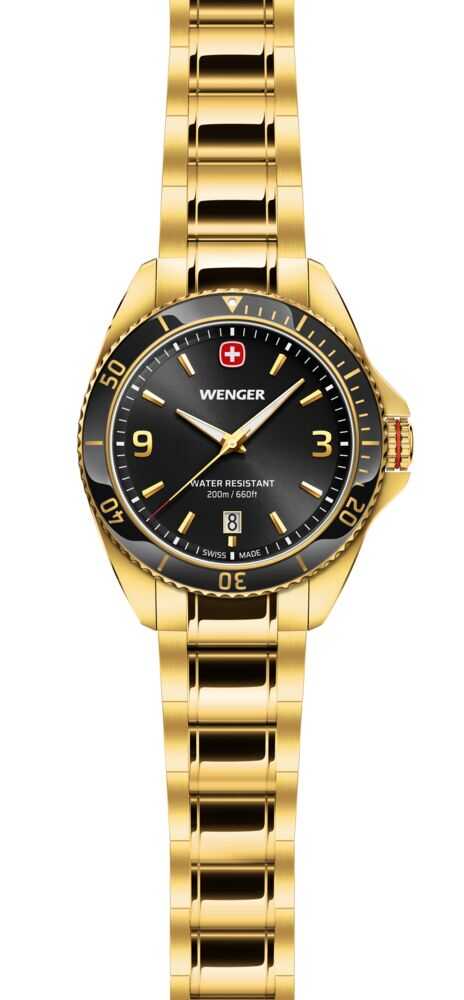 Executive saat ile zamansız zarafeti benimseyin. İster günlük kullanım ister özel davetler için olsun, bu saat yaşam tarzınızın gerekliliklerini karşılarken her kombini bir üst seviyeye taşımak üzere tasarlanmıştır. Bu İsviçre yapımı kuvars saat, kasayı, bezelde yer alan metalize mineral inserti ve kadranı uyum içinde bir araya getiren özenle düzenlenmiş renk paletiyle Wenger’in zengin mirasına saygı duruşunda bulunur. Zarif kadran, sofistike aplik indeksler ve ışık yayan alanlarla süslenmiş olup, düşük ışık koşullarında ve gece kullanımında optimum okunabilirlik sağlar. Saat kasasında kullanılan metalik yüzeyler ve parlatılmış pahlar sayesinde Executive, işlevsellik ve stilin kusursuz bir ifadesi olarak öne çıkar.